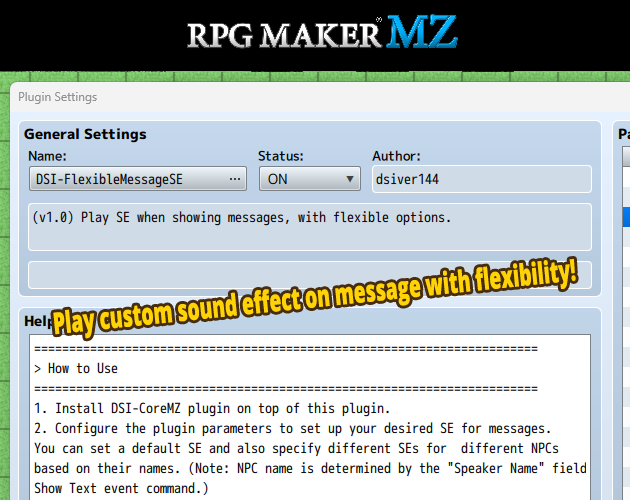 | Tags | message-system, No AI, RPG Maker MZ, Sound effects |